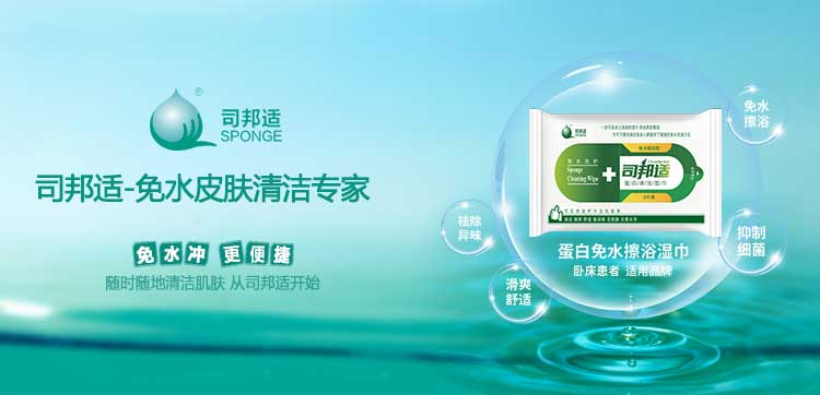 ? ? ? ?本公司研發(fā)的司邦適蛋白表面活性因子,不僅對人體皮膚及粘膜沒有刺激,同時(shí)具有對皮膚很強(qiáng)的清潔能力;可以祛除人體皮膚上的異味,并且具有較強(qiáng)的抑菌功效。使用后無需用水沖洗皮膚仍感到舒適爽滑;基于上述原因我們研發(fā)的司邦適免水清潔系列產(chǎn)品。主要適用于各種主觀或者客觀上不方便全身或局部皮膚清潔的人群。
